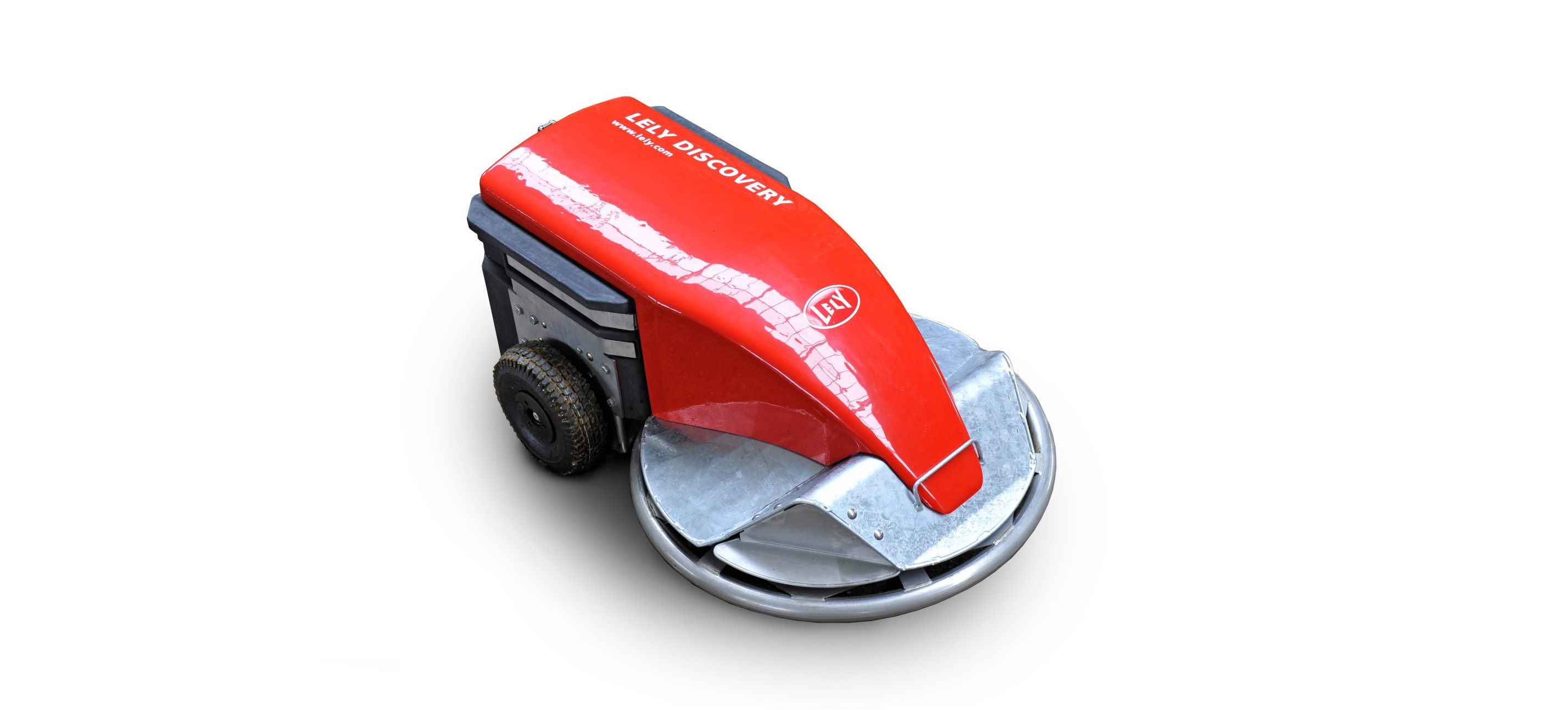 Lely Discovery 90S/90SW — мобильный робот на аккумуляторных батареях для чистки щелевых полов. Робот движется по полам и проталкивает навоз специальным скребком между щелями.