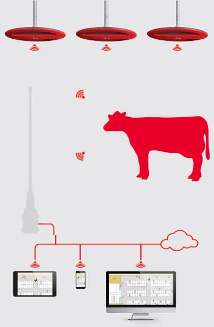 Несколько антенн устанавливаются в коровнике, которые получают информацию от респондеров на шее коровы. Антенны, в свою очередь, передают информацию в Lely T4C. Таким образом, Lely CowLocator